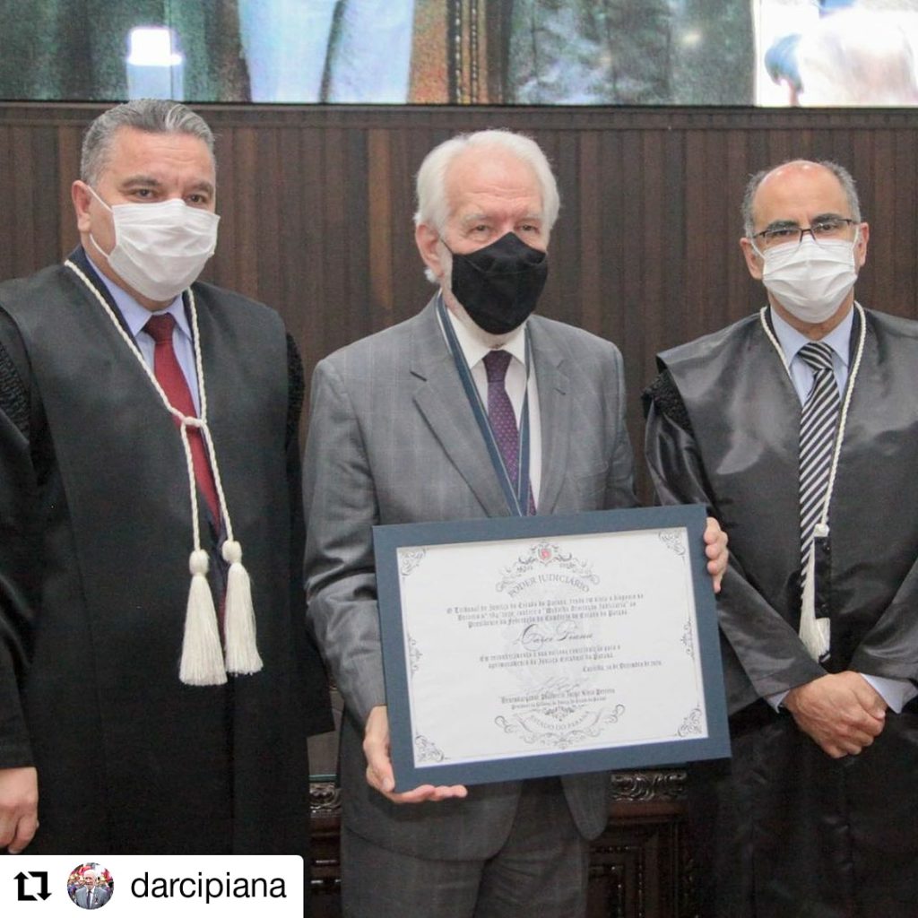 O vice-governador do Paraná, Darci Piana, recebeu em cerimônia realizada na noite do dia 10 de dezembro, a medalha “Distinção Judiciária” do Tribunal de Justiça do Paraná – TJPR. A honraria foi entregue pelo presidente do TJ, desembargador Adalberto Jorge Xisto Pereira, e pelo corregedor da Justiça, Luiz Cezar Nicolau.