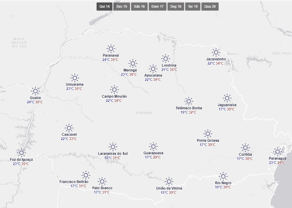• Só em Foz do Iguaçu e Beltrão não vai chover