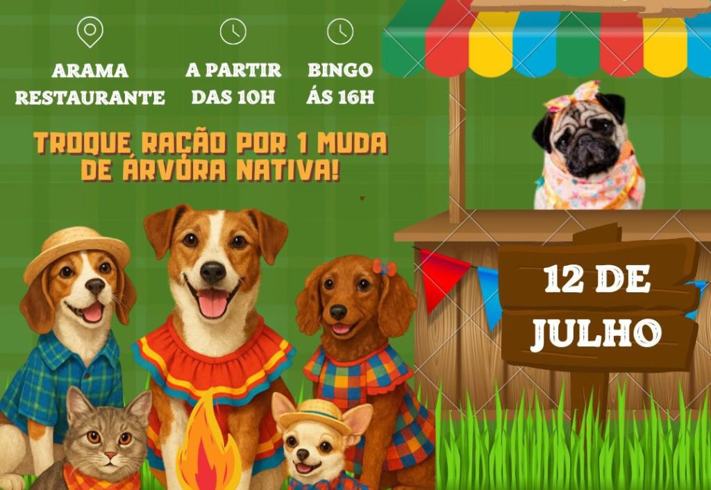 A Diretoria de Bem-Estar Animal (Diba), vinculada à Secretaria de Meio Ambiente, convida toda a população de Foz do Iguaçu para o Arraiá Cãopira, que acontece no próximo sábado (12), a partir das 10h, organizado em parceria com o Arama Restaurante.