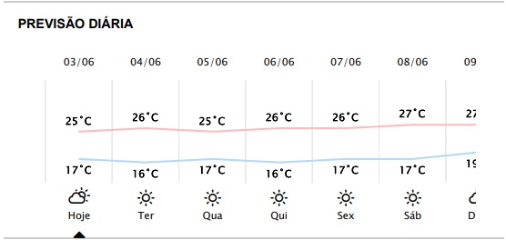 A novidade fica por conta da previsão de dias ensolarados pela frente, com temperaturas amenas durante toda a semana.