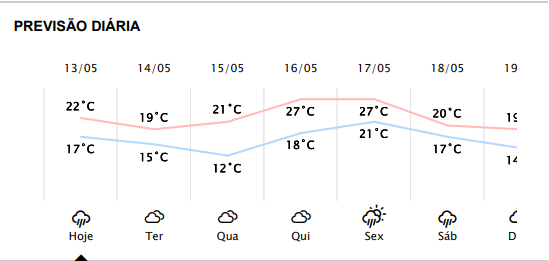 Parece que o calorão, enfim, está indo embora, tendo em vista as temperaturas mínimas previstas, que devem ficar abaixo dos 20 graus.