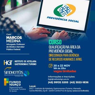 Devido a essa situação, o Instituto de Hotelaria, Gastronomia e Turismo, o Sindicato de Hotéis de Foz do Iguaçu e o Fundo Iguaçu vão promover um curso de Qualificação na Área de Previdência Social, direcionado, principalmente, para contadores, advogados trabalhistas e gerentes de Recursos Humanos.