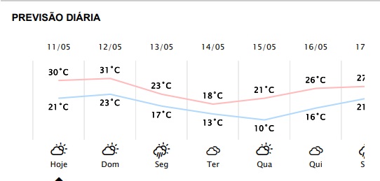 Porém, sempre tem um porém, as temperaturas máximas despencam a partir de segunda-feira e chegam a 18 graus na terça-feira.