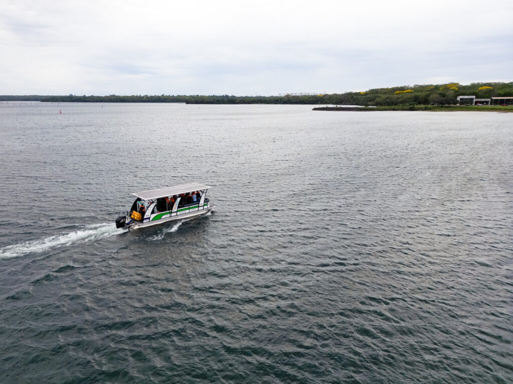 A primeira navegação ocorreu no reservatório da Itaipu, junto à barragem, e foi acompanhada jornalistas e colaboradores de ambas as instituições.