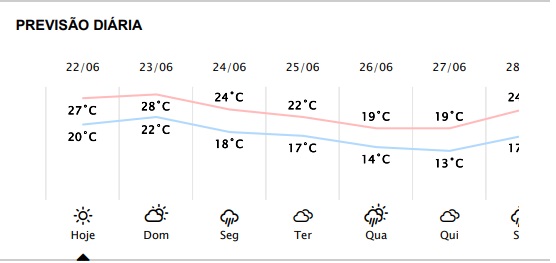 Pelo contrário, a previsão é de temperaturas bem amenas, acima dos 20 graus.