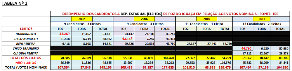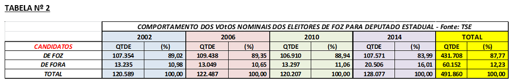 Porém, de 2002 para 2014, a porcentagem de votos dos eleitores de Foz em candidatos de fora, os chamados paraquedistas, vem aumentando: