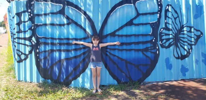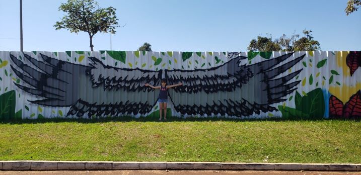Milena não resistiu aos grafites e quis fazer poses em vários pontos da grafitagem.