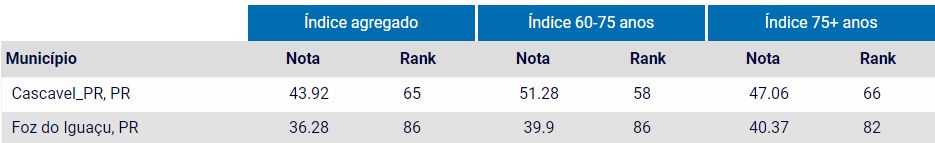 Entre 498 cidades avaliadas no Brasil, Foz do Iguaçu ficou em 86º lugar entre aquelas que melhor (?) atendem seus idosos. No ranking paranaense, ficou em último lugar entre as cidades de maior porte.