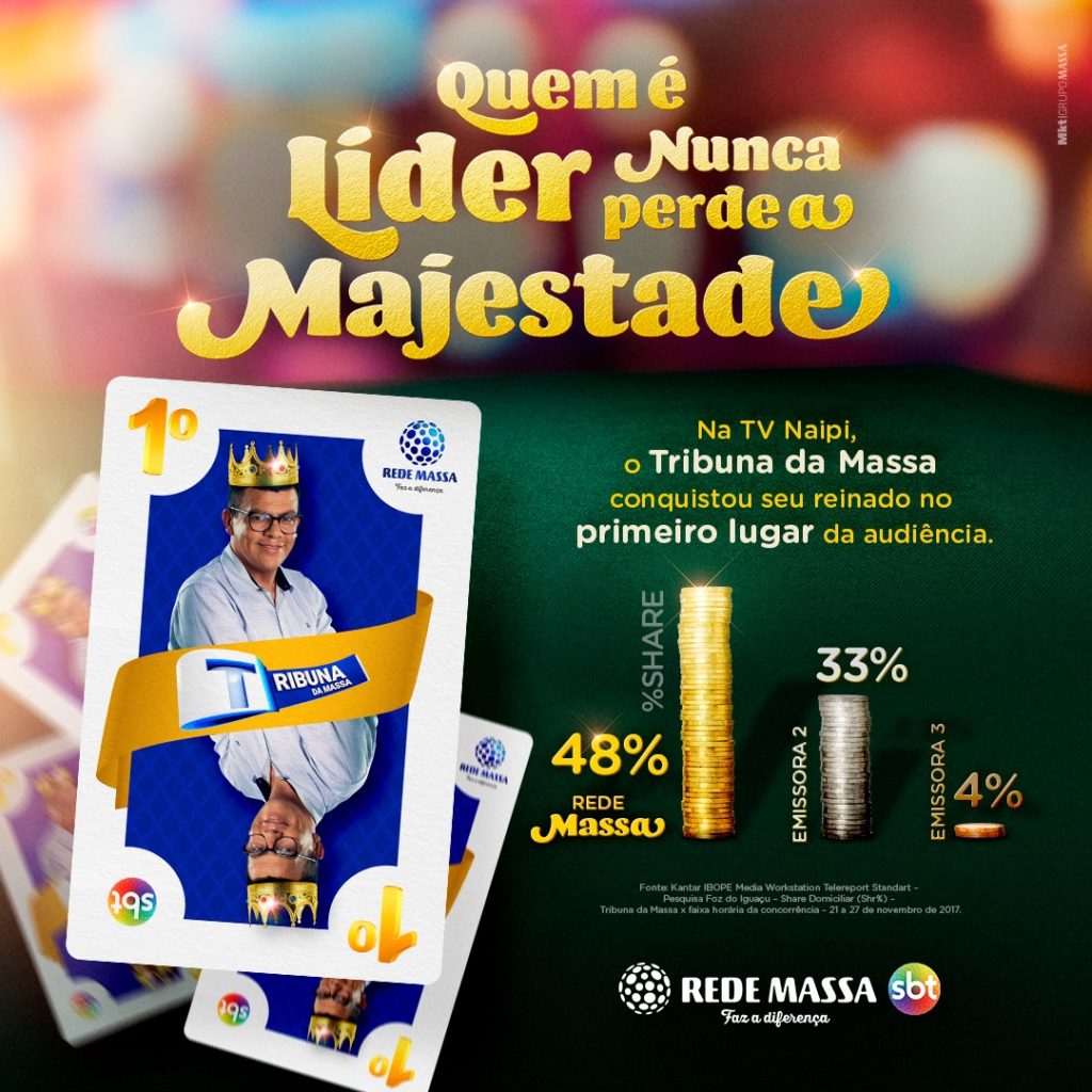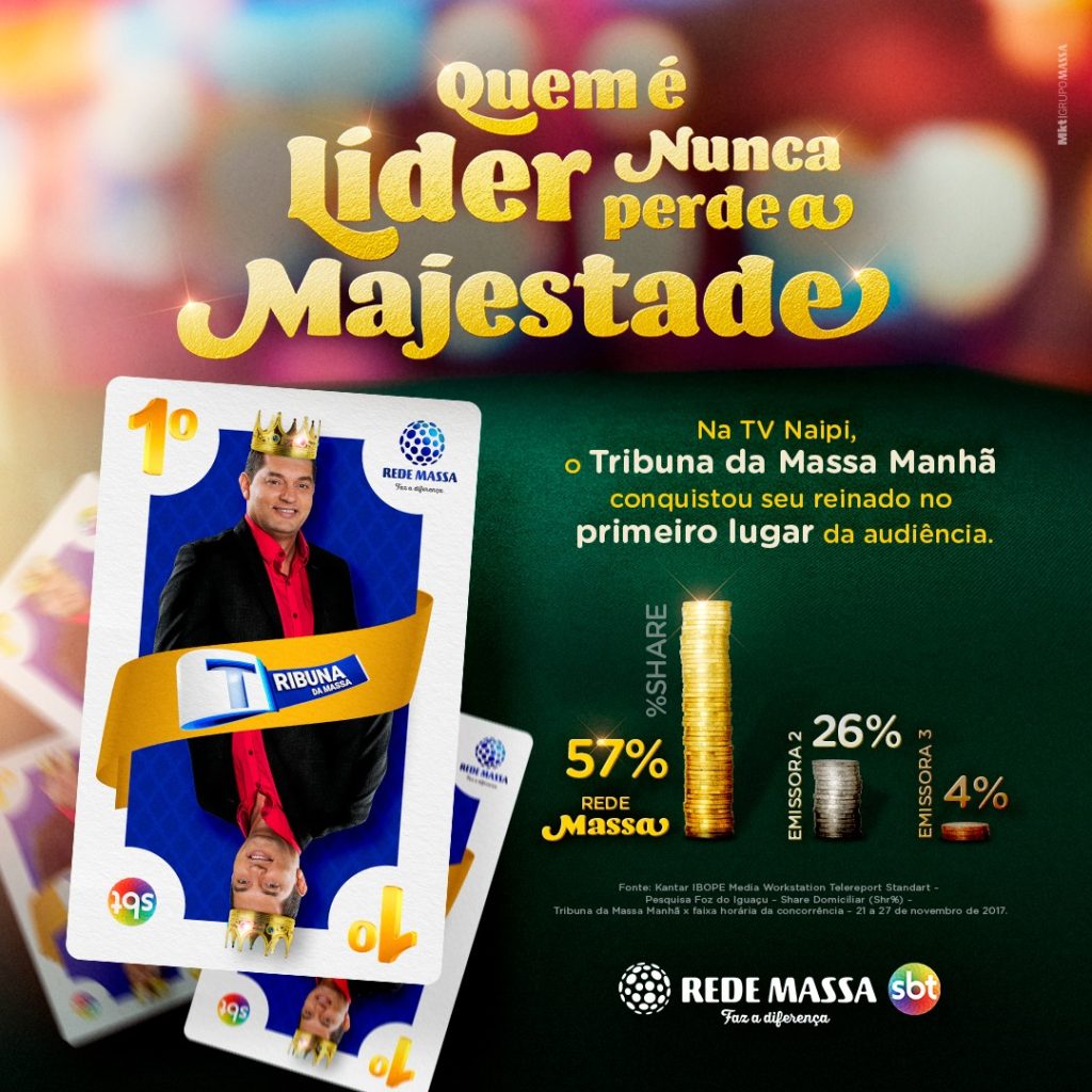 Resultado: os bons índices de audiência levaram a tevê do Ratinho a preparar uma ampla campanha publicitária, sob o título “Quem é líder, nunca perde a majestade”, para comemorar a liderança – à qual o Não Viu? teve acesso.