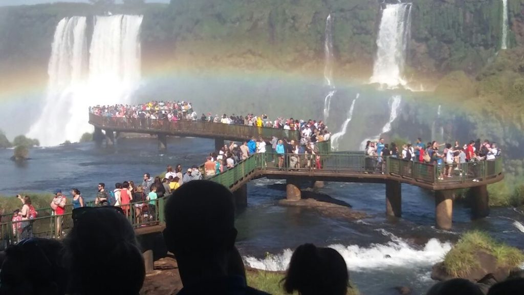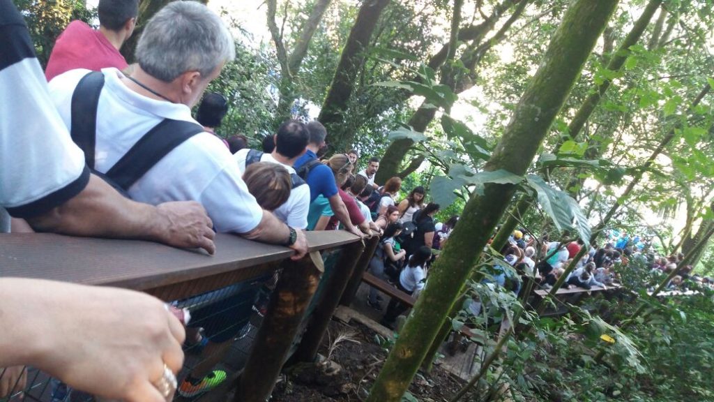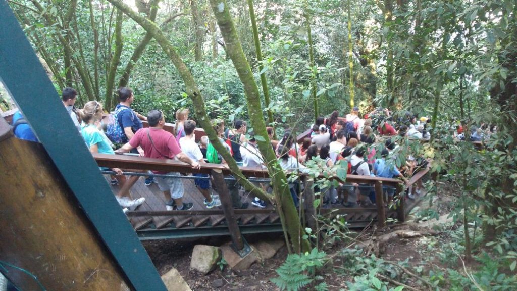 Nosso correspondente informal, o guia de turismo Eliseu Lopes, registrou hoje (18) um grande fluxo de turistas nas Cataratas do Iguaçu, lado brasileiro. O número de visitantes é tão grande que causou um certo “congestionamento” nas passarelas que dão acesso às quedas. Vejam as fotos.