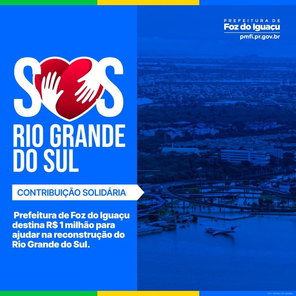 O prefeito de Foz do Iguaçu, Chico Brasileiro, anunciou nesta quinta-feira (9) a destinação de R$ 1 milhão para ajudar na recuperação do Rio Grande do Sul. O recurso foi viabilizado com o cancelamento 45ª Feira de Artesanatos e Alimentos de Foz do Iguaçu (Fartal), que aconteceria nos dias 7, 8, 9 e 10 de junho no Centro de Convenções.