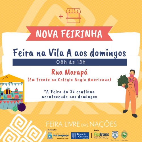 Moradores e visitantes de Foz do Iguaçu terão mais uma opção de lazer e gastronomia aos domingos. A partir do dia 4 de julho, a Feirinha da Vila A passa a ser realizada também aos domingos.