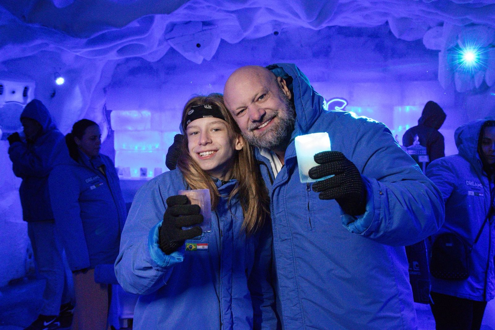 O ambiente é completamente feito de gelo, inclusive os copos, e conta com cenários esculpidos em gelo cristalino. O Trono de Game of Thrones, o boneco Olaf (Frozen) e os Pinguins de Madagascar estão entre os favoritos para fotos.