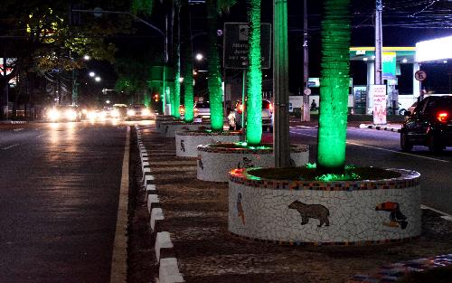 Foto do dia (ou da noite?): revitalização do canteiro central da Avenida Jorge Schimmelpfeng
