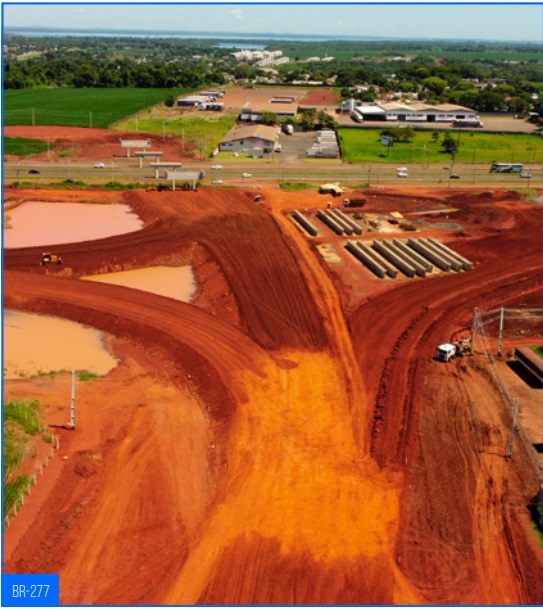 A terraplanagem permanece em foco na interseção com a BR-277 onde está sendo executado o aterro para todos os ramos que chegam ao futuro viaduto. Ressalta-se que nesta mesma interseção, está sendo realizado o remanejamento elétrico.
