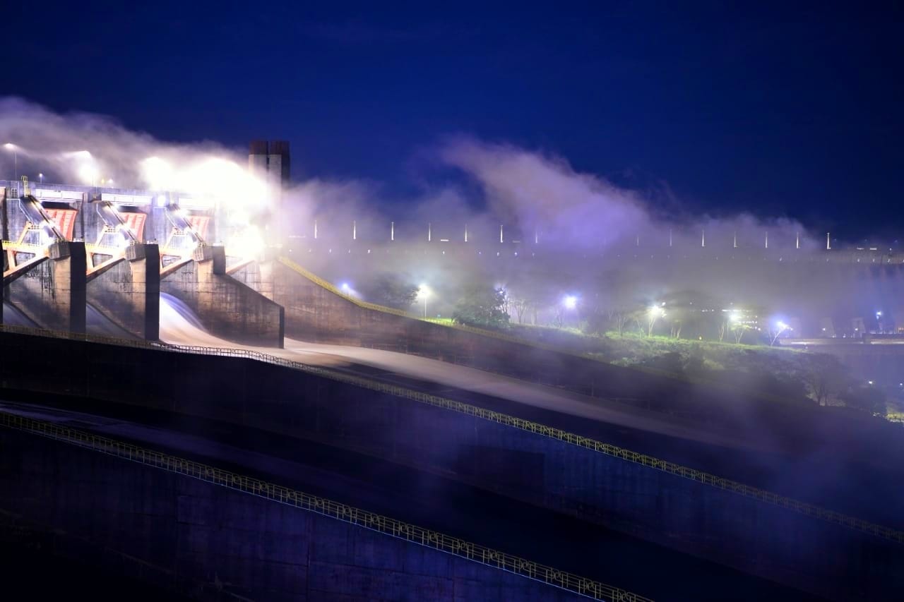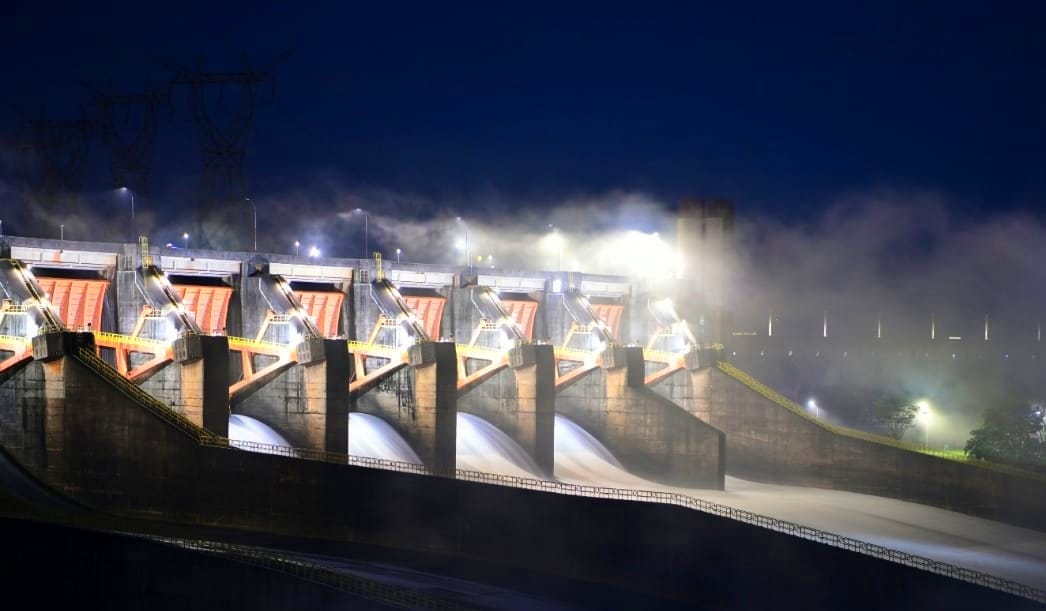 Fotos desta madrugada: abertura do vertedouro da Itaipu