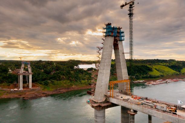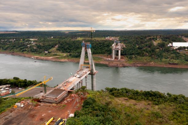 As obras na Ponte da Integração Brasil-Paraguai, que ligará Foz do Iguaçu a Presidente Franco, já atingiram 52% da execução, com aplicação de R$ 122,5 milhões, ou seja, 38% dos R$ 323 milhões que a Itaipu Binacional vai investir nesta nova ligação entre os dois países.