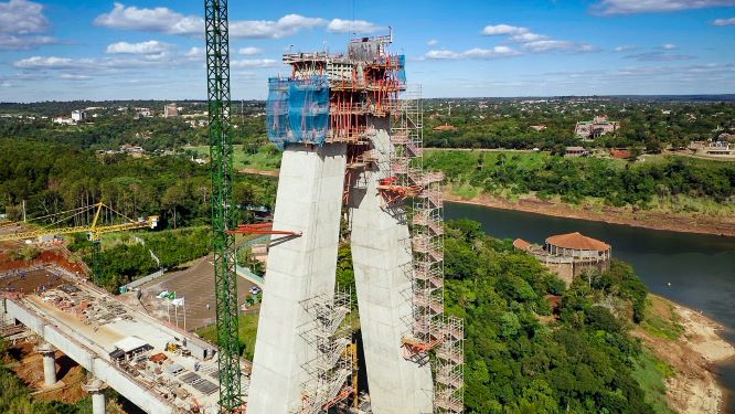 Na margem paraguaia, a obra em destaque neste mês foi a construção do mastro principal, que chegou a 97 metros de altura. Foi também descolado o terceiro trecho em concreto armado dos cinco que compõem o tabuleiro da ponte no lado paraguaio. Esse trecho tem 20,5 metros de largura e 28,12 metros de comprimento.