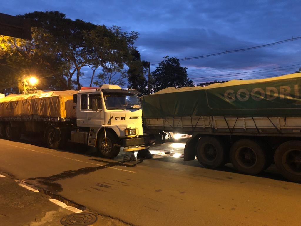Será que Prefeitura de Foz do Iguaçu vai ter de contratar um guincho para ficar de plantão na Avenida Paraná? Vejam as fotos da jornalista Cida Costa, da Rádio Cultura, tiradas na noite de ontem, que mostram o choque de duas carretas na avenida. Resultado: uma ficou empacada.