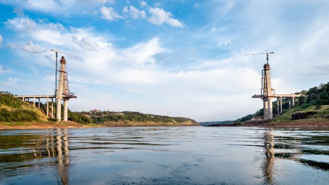 As obras da Ponte da Integração, que vai conectar Foz do Iguaçu a Presidente Franco, no Paraguai, alcançaram 64% de execução neste mês de julho, conforme o último boletim técnico divulgado pelo Consórcio Ponte Brasil-Paraguai (Única/MPB/RMG). Os investimentos na construção ultrapassaram R$ 149 milhões, do total previsto de R$ 323 milhões.