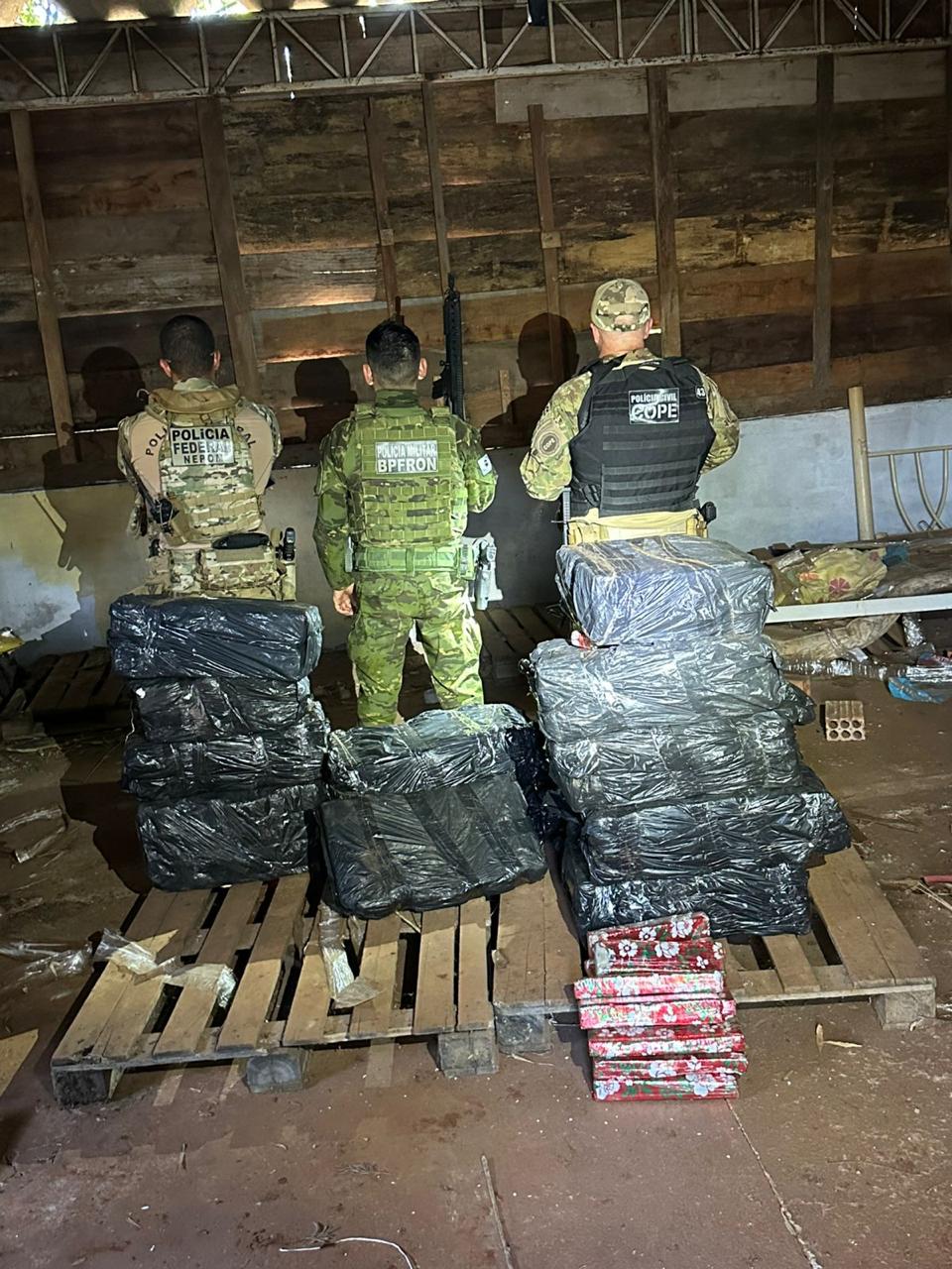 Policiais federais e militares localizaram uma chácara que servia como depósito de drogas em uma localidade próximo ao lago de Itaipu com centenas de quilos de maconha em Foz do Iguaçu.