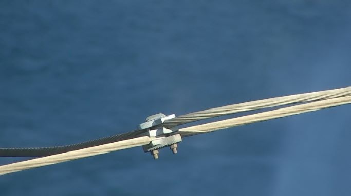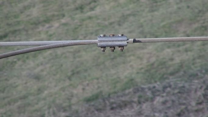 A foto acima mostra a interligação típica entre cabos para-raios, inspecionados à distância. Foto: JIE