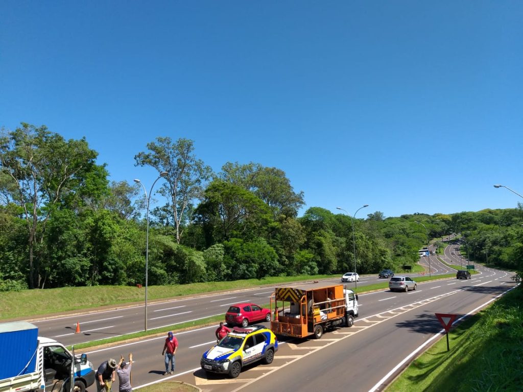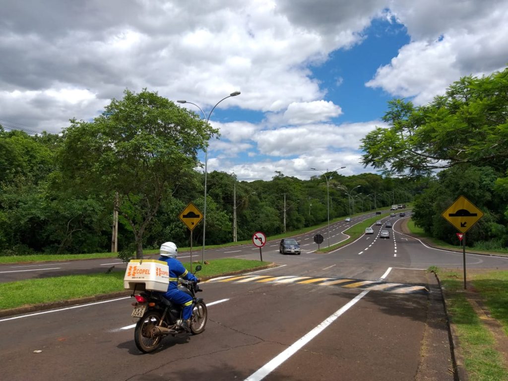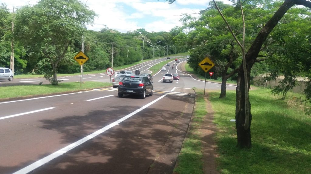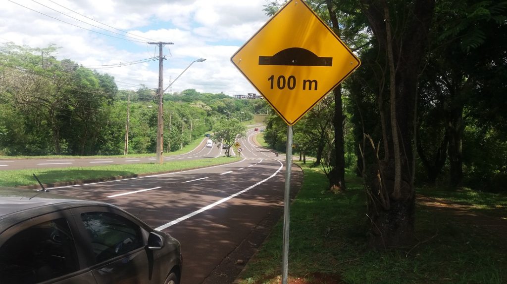 Duas lombadas foram construídas no local, uma em cada sentido da pista, para frear os mais apressadinhos e, de quebra, facilitar o acesso de quem sai da BR-277 para entrar na avenida.