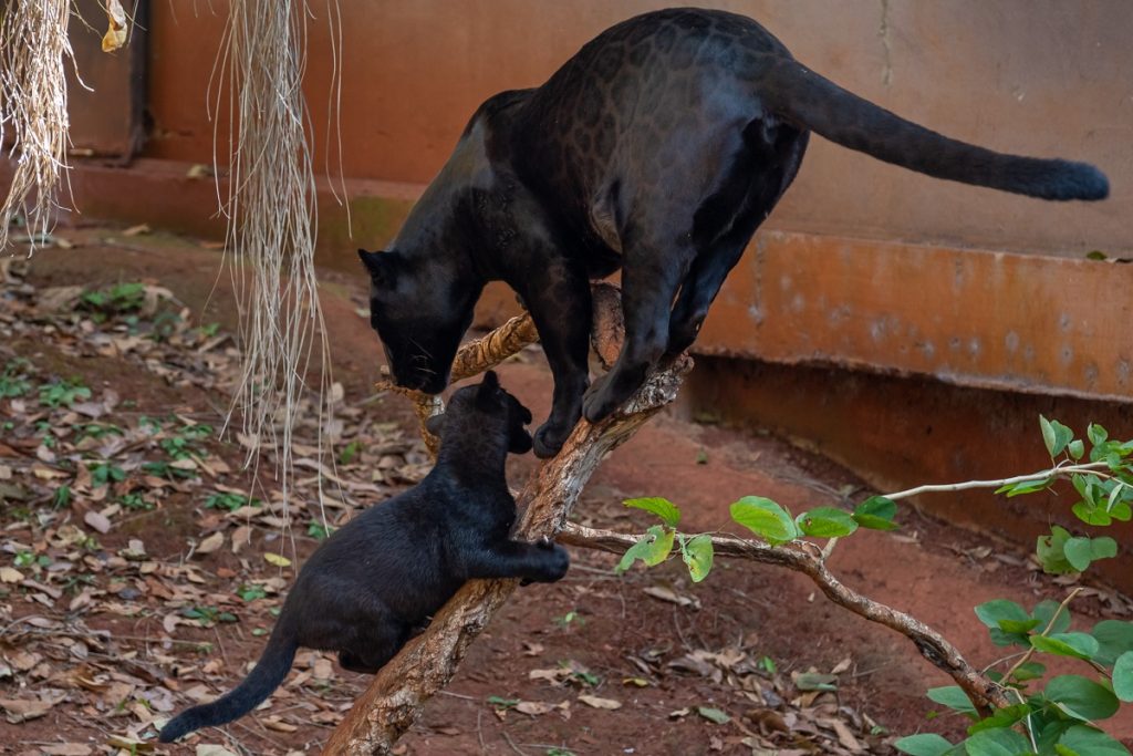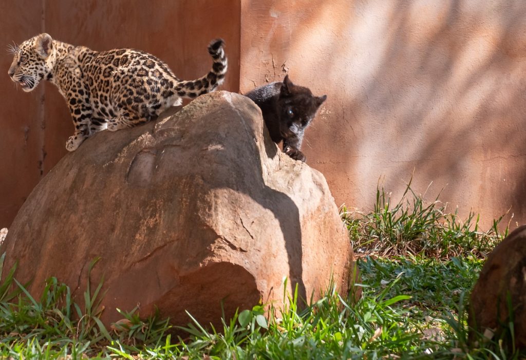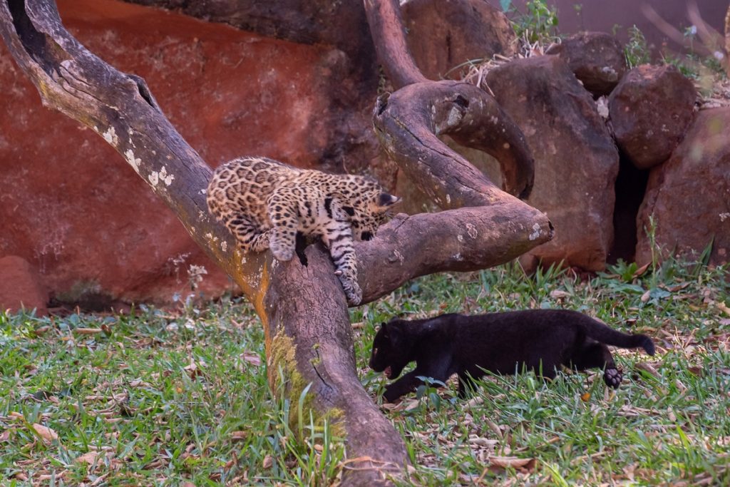 Assim foram os primeiros passos dos filhotes de onça-pintada (Panthera onca) nascidos no início de junho no Refúgio Biológico Bela Vista (RBV), no recinto que vão compartilhar com a mãe pelos próximos anos.