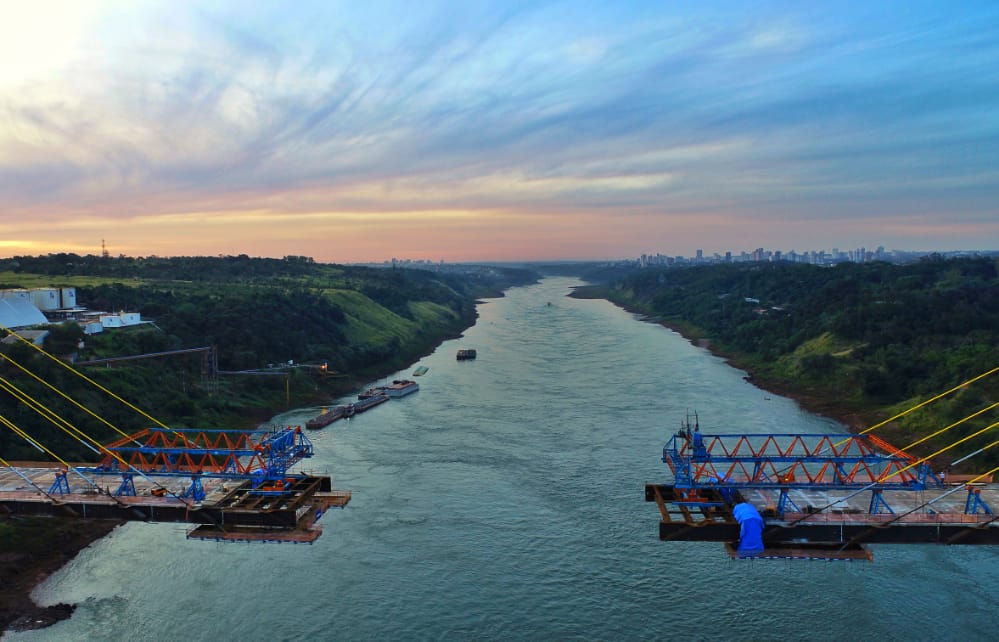 As aduelas que compõem o tabuleiro da Ponte da Integração estão a, apenas, 53 metros da junção em seu trecho central. A ponte, que vai ligar Foz do Iguaçu, no Brasil, e Presidente Franco, no Paraguai, está mais de 86% concluída e deve ser inaugurada nos próximos meses.