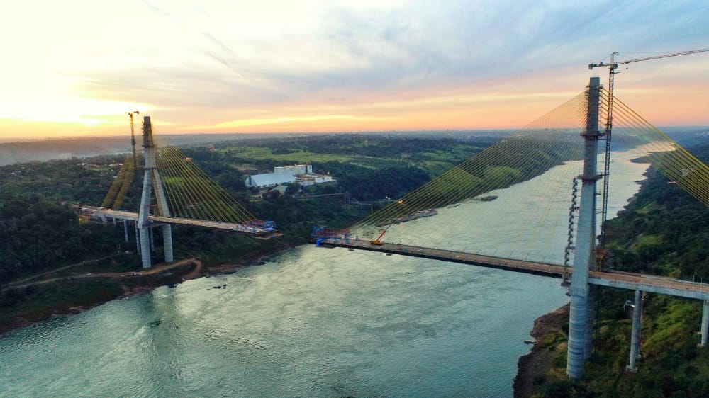 As aduelas que compõem o tabuleiro da Ponte da Integração estão a, apenas, 53 metros da junção em seu trecho central. A ponte, que vai ligar Foz do Iguaçu, no Brasil, e Presidente Franco, no Paraguai, está mais de 86% concluída e deve ser inaugurada nos próximos meses.