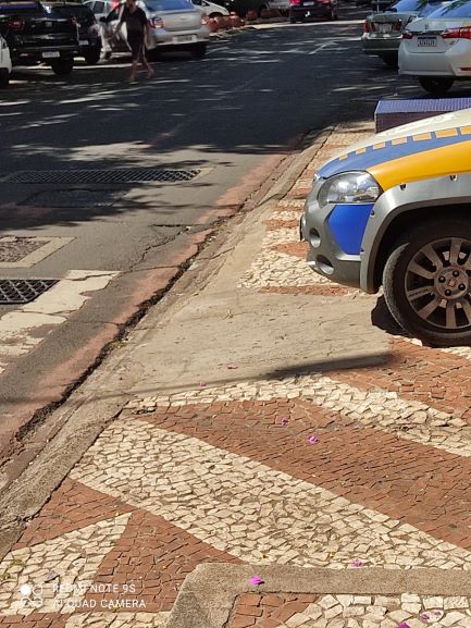 Por incrível que pareça, o veiculo, que deveria ser usado para cuidar do trânsito, está obstruindo uma rampa de acesso de cadeirantes