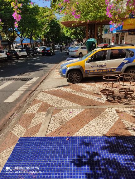 Leitor assíduo do Não viu?, indignado, mostra uma viatura da Guarda Municipal, responsável por atuar na área de trânsito, estacionada irregularmente na Avenida Brasil, centro de Foz do Iguaçu.