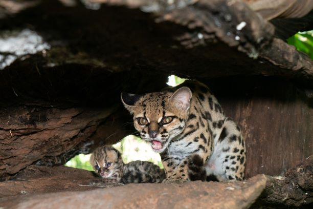 Um filhote de gato-maracajá (Leopardus wiedii), espécie classificada como ameaçada de extinção pelo Ministério do Meio Ambiente, nasceu na noite do dia 25 de dezembro no Refúgio Biológico Bela Vista (RBV), mantido pela Itaipu Binacional, em Foz do Iguaçu (PR).