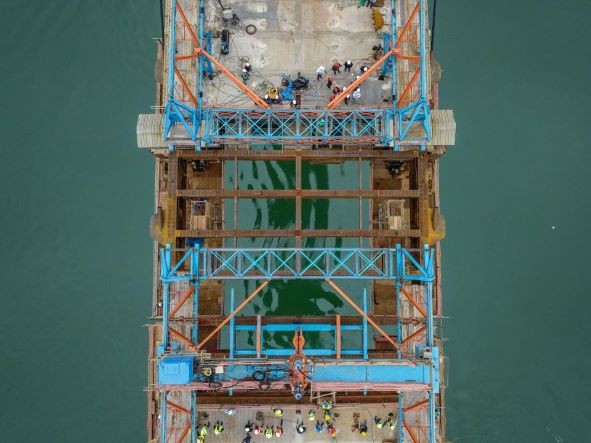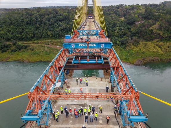 Essa última aduela (uma peça metálica da estrutura da ponte) levou 51 dias até ser concluída e ter todos os ensaios aprovados no canteiro brasileiro. O trabalho teve início no dia 9 de junho e terminou no dia 29 de julho. A partir de agora será realizado o processo de concretagem.