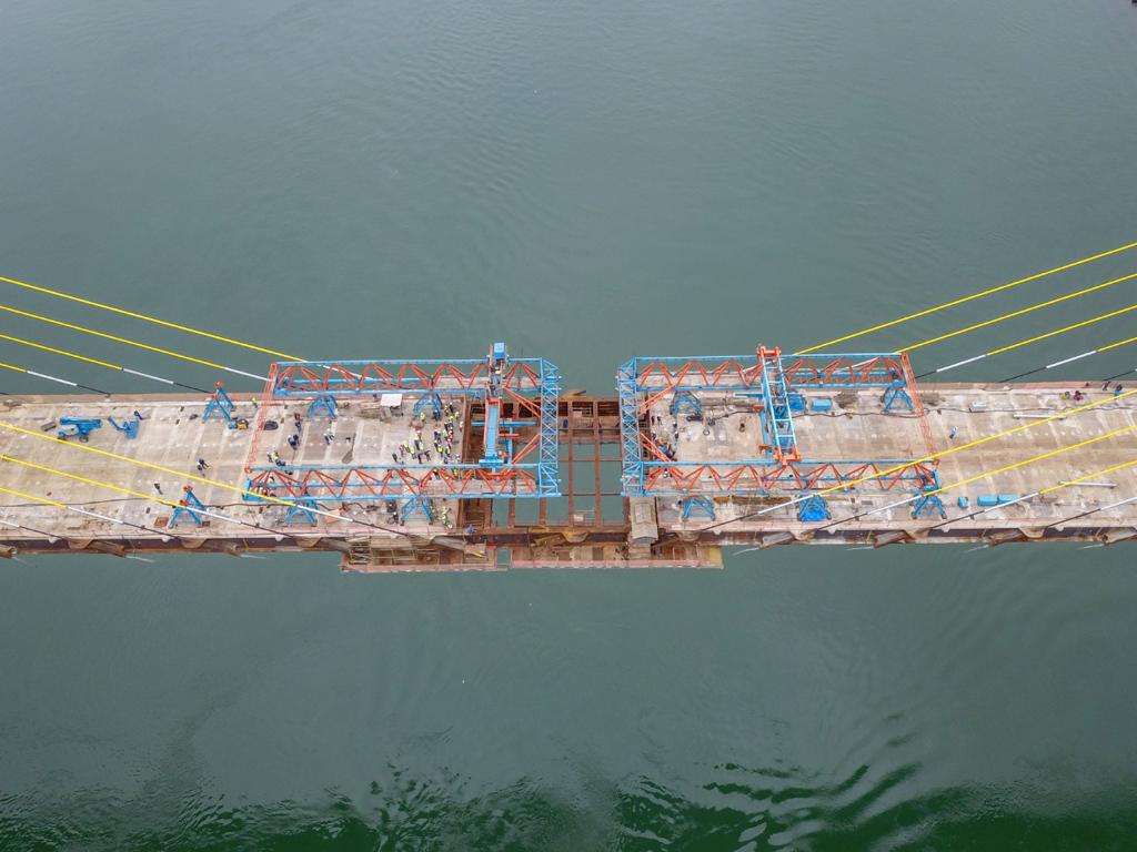 As demais aduelas instaladas no tabuleiro da ponte pesam, em média, 62 toneladas. Elas se conectam aos estais, o que mantém a estabilidade da obra.