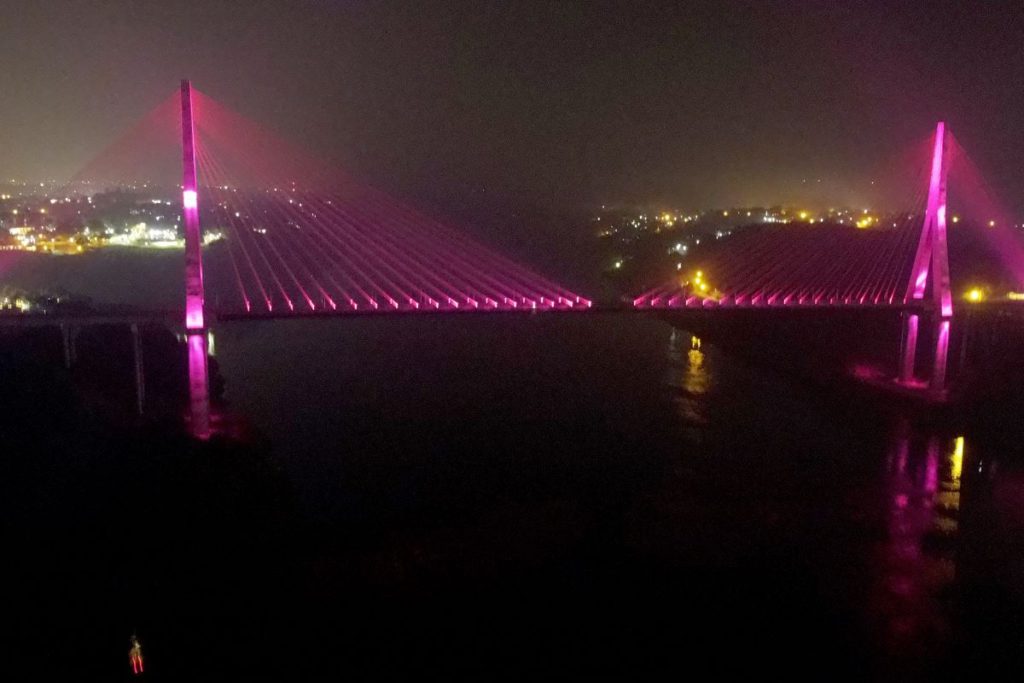 O Departamento de Estradas de Rodagem do Paraná (DER/PR), autarquia da Secretaria de Infraestrutura e Logística (SEIL), está iluminando com a cor rosa a Ponte da Integração Brasil–Paraguai, em Foz do Iguaçu, região Oeste.