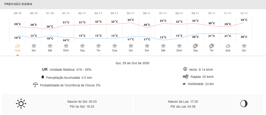 Confira abaixo a previsão do Simepar para Foz do Iguaçu <img class="alignnone size-large wp-image-41515" src="https://www.naoviu.com.br/wp-content/uploads/2020/10/tempo-8.png" alt="" width="900" height="390" />