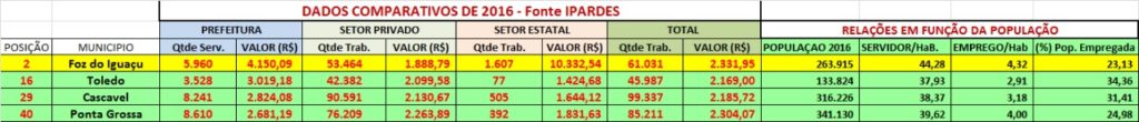Os dados são do Ipardes (Instituto Paranaense de Desenvolvimento Econômico e Social), com base em dados de 2016. Os de 2017 ainda não foram divulgados, segundo foi informado ao blog, mas não devem ser muito diferentes, tendo em vista que os reajustes têm como base os índices da inflação.