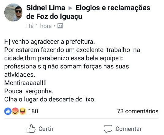 Depois, conclui: “Mentiraaa!!! Pouca vergonha. Olha o lugar do descarte do lixo”.