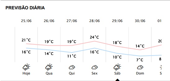 Isso, sem levar em conta que as previsões do Simepar são de temperaturas máximas entre 26 e 31 graus para o início de julho.