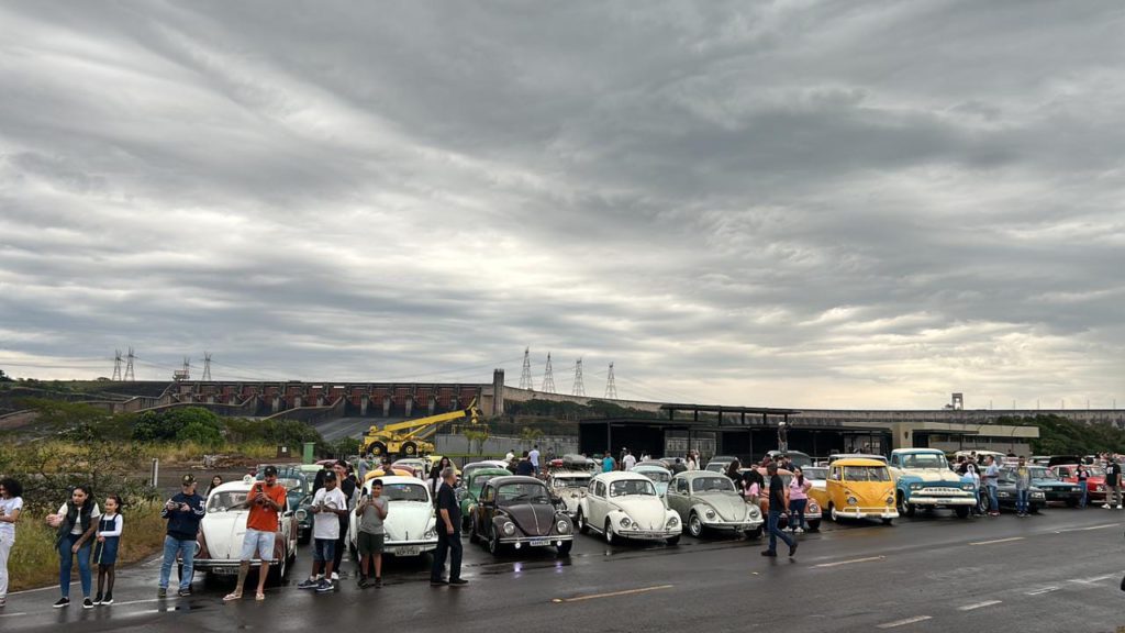 Neste último domingo (16), 84 amantes de carros antigos, a maioria Fuscas, fizeram um passeio pela usina de Itaipu. Além da confraternização entre amigos, a ideia foi arrecadar alimentos para o Conselho Comunitário da Vila C, em Foz do Iguaçu.