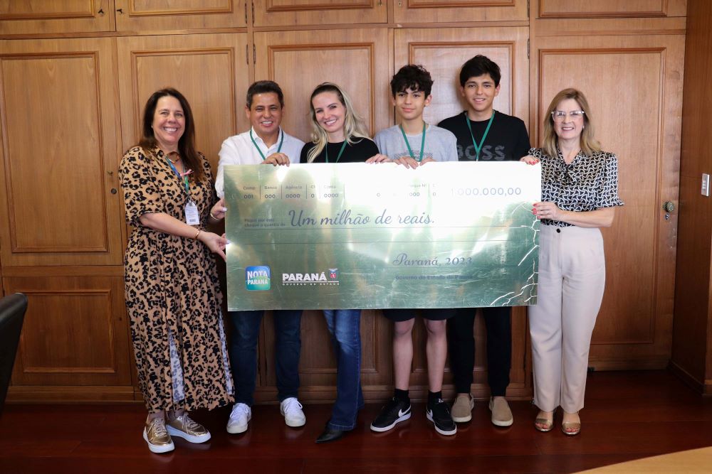 O ganhador do prêmio de R$ 1 milhão do programa Nota Paraná e a ganhadora de R$ 100 mil do último sorteio receberam na quarta-feira (11) os cheques simbólicos dos prêmios. ue