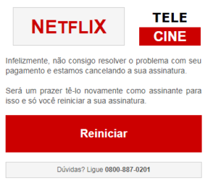 Outro golpe nos mesmo moldes está sendo aplicado nos assinantes do Netflix e Telecine.