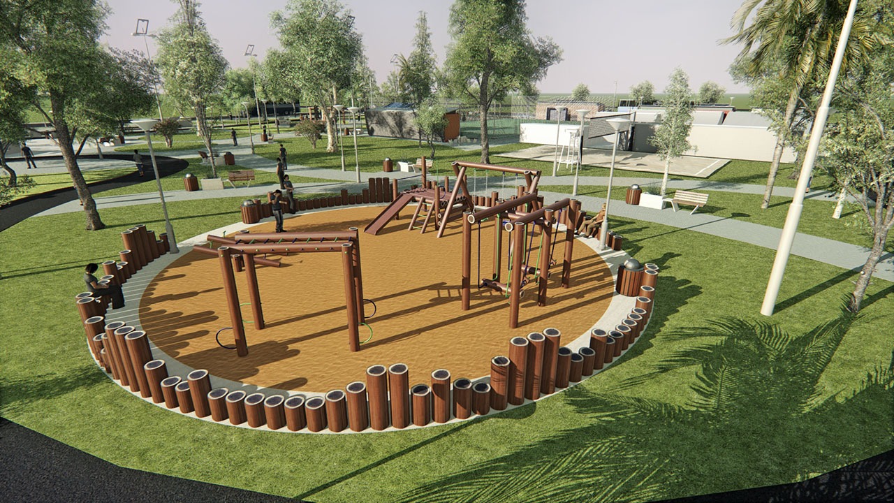 Veja imagens do projeto da praça, que contará com quadra de esportes, playground e academia ao ar livre. E iluminação. Projeto simples, mas simpático, não é mesmo?