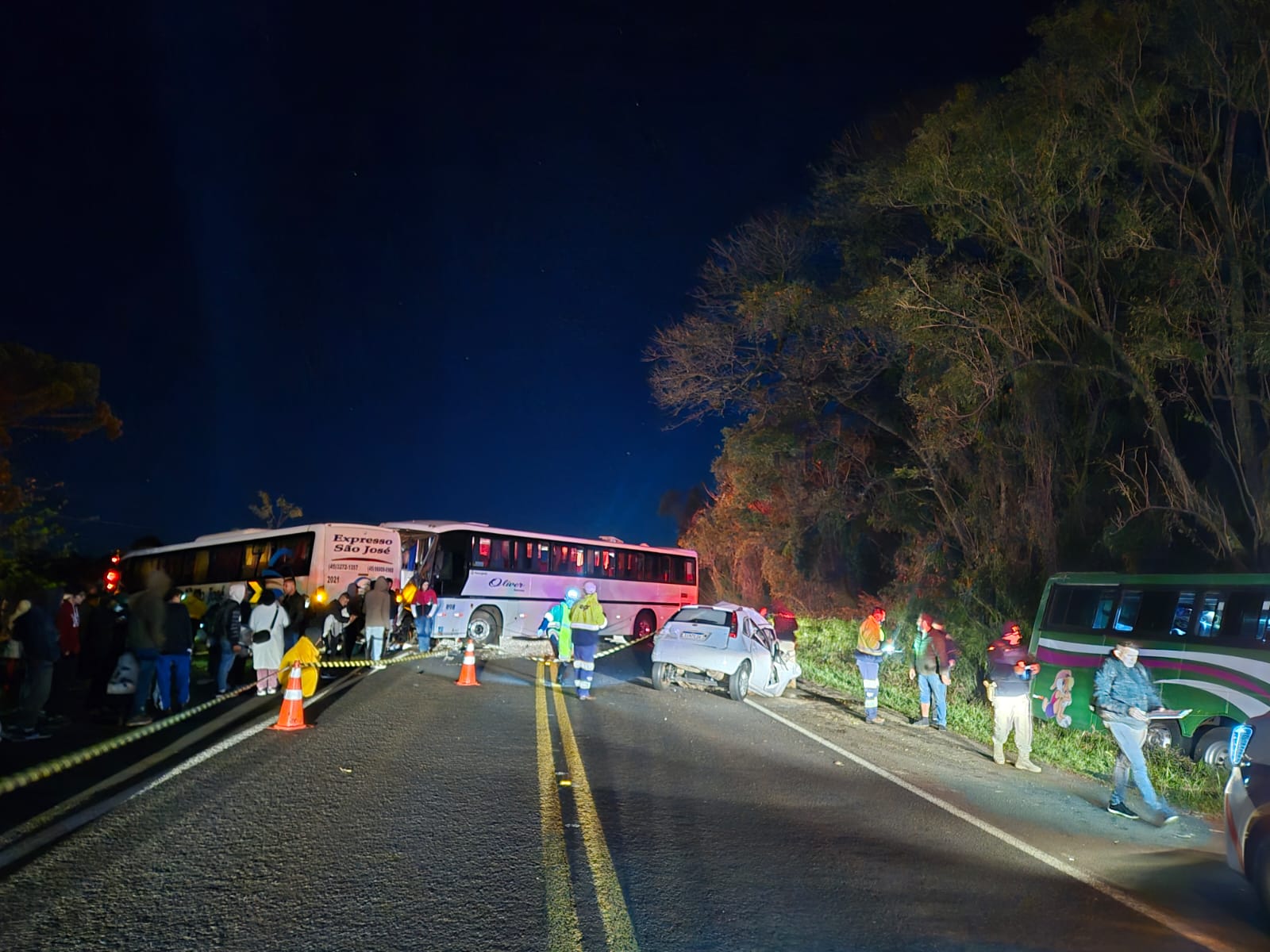 Grave acidente envolvendo três ônibus deixa dois mortos e 13 feridos na BR-277