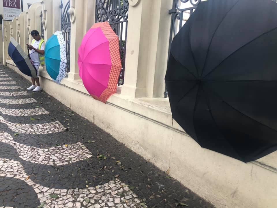 Porque, apesar do calor espantoso dos últimos dias, na marca dos 30 graus, vai que chove. E choveu, nesta sexta, 4. E isso deixou o vendedor feliz, com os R$ 30 a cada guarda-chuva vendido.