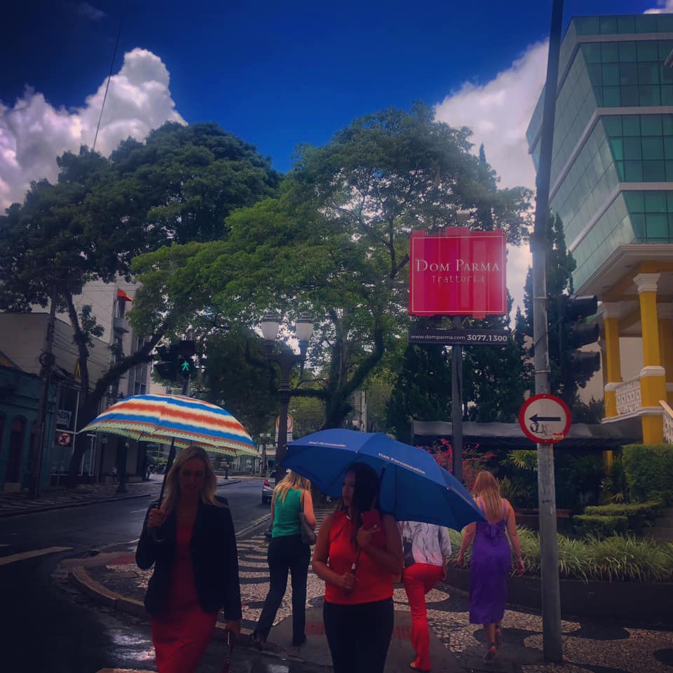 Porque, apesar do calor espantoso dos últimos dias, na marca dos 30 graus, vai que chove. E choveu, nesta sexta, 4. E isso deixou o vendedor feliz, com os R$ 30 a cada guarda-chuva vendido.