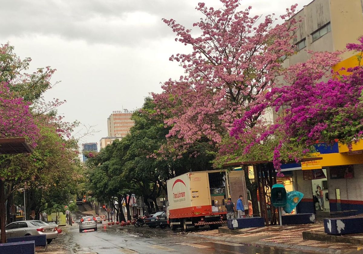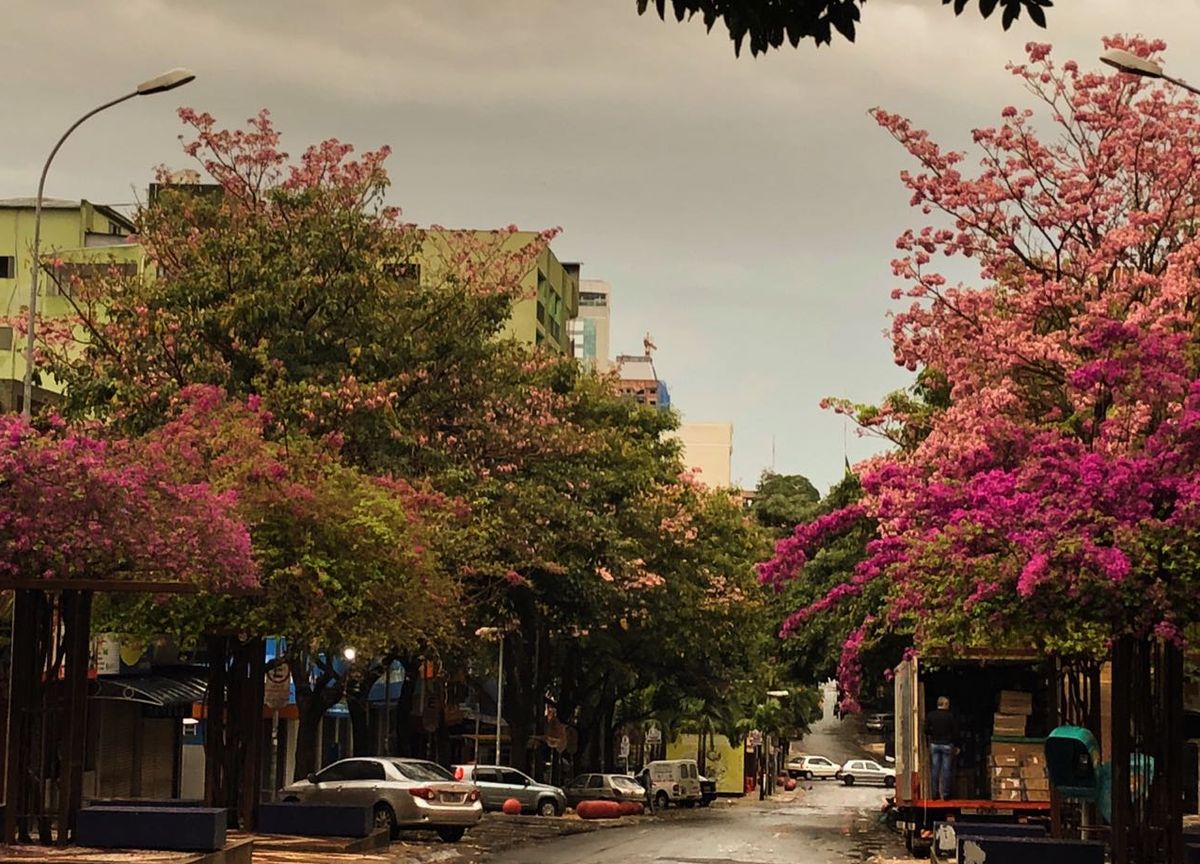 Chove, e como chove! Mas se você for na Avenida Brasil e adjacências, note como tudo já mudou. Há mais verde, há mais cores. As flores voltaram com tudo nas árvores que margeiam as ruas do centro.