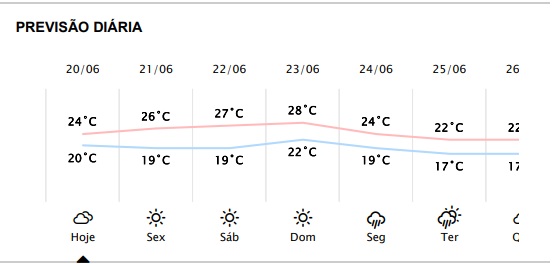 As temperaturas amenas devem prevalecer nos próximos dias, mesmo com a chuva prevista para a segunda-feira, dia 24, feriado em Foz do Iguaçu.