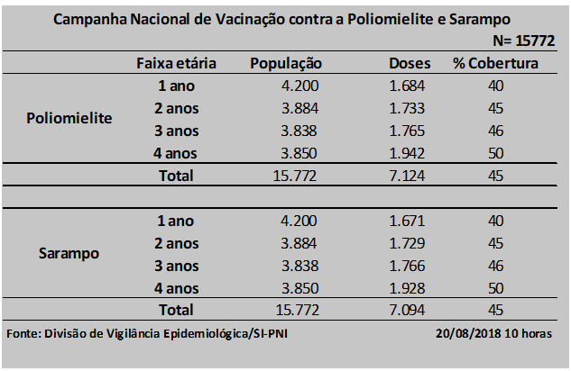 A campanha de vacinação contra a poliomielite e o sarampo em crianças com idade entre 1 e 4 anos não alcançou o objetivo desejado em Foz do Iguaçu.